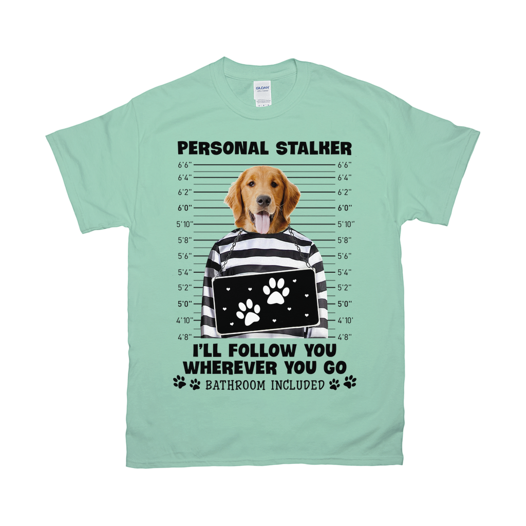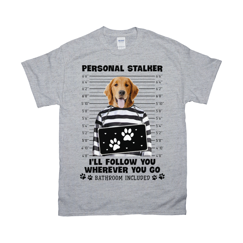 Custom T Shirt With Pet Face | Personalized Gift For Dog & Cat Lovers | Personal Stalker Will Follow You Wherever You Go Unisex T Shirt