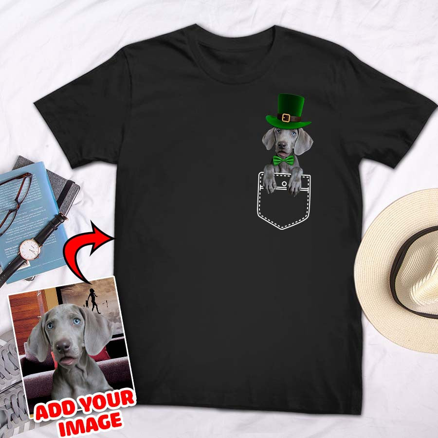 Custom T Shirt With Pet Face | Personalized Gift For Dog & Cat Lovers | Pet Pocket St Patrick Hat Unisex T Shirt